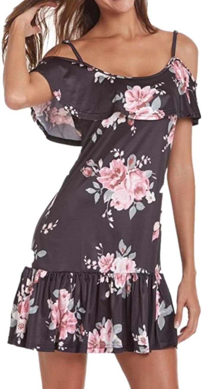 Damen Kleider Allskid Frau Sommer Runder Kragen Falbala Armellos Blumendruck Spaghetti Trager Mini Slip Kleid Women Dresses Cn S Eu 34 Schwarz Amazon De Bekleidung