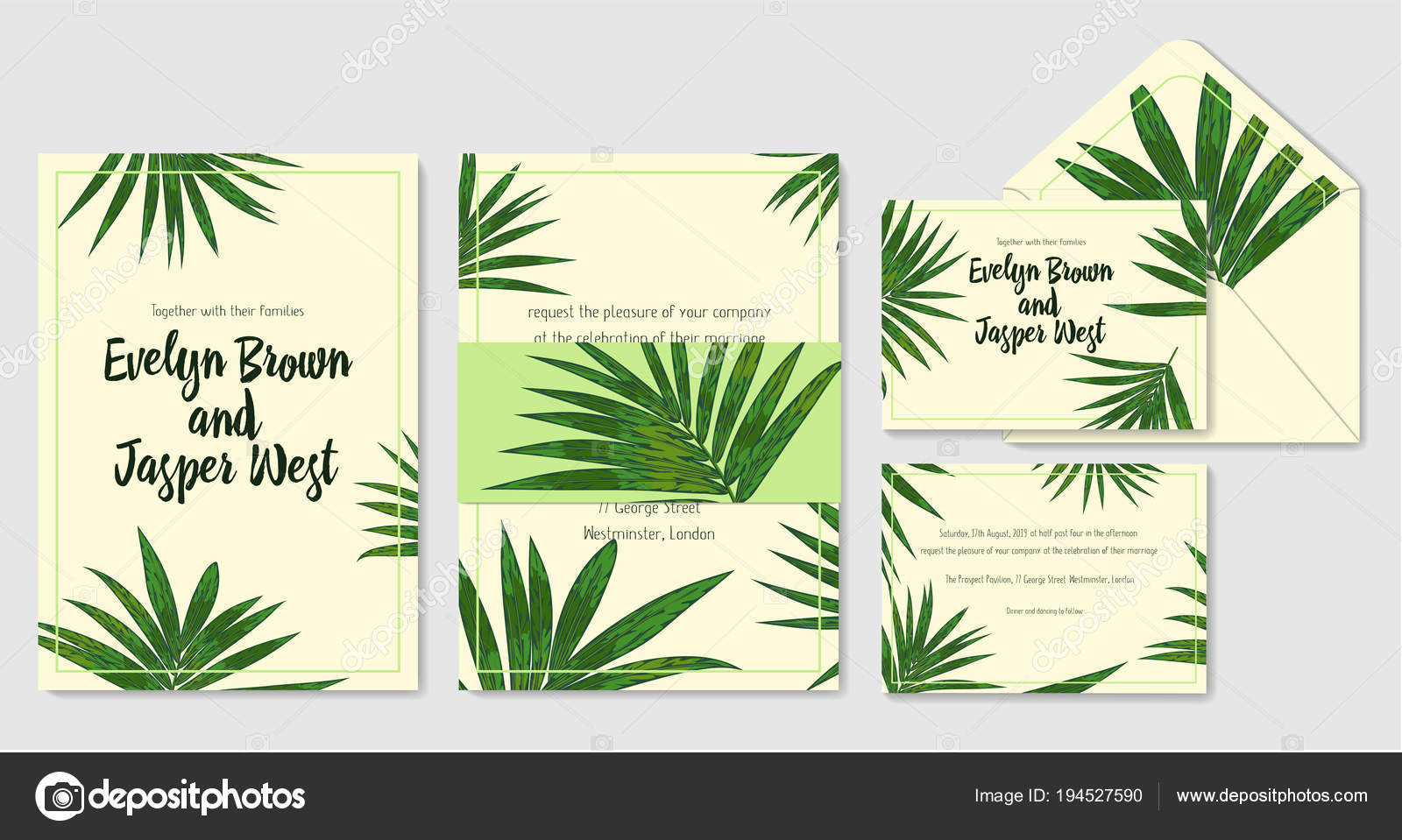 Invito Di Nozze Busta Rsvp Biglietto Di Auguri Design Con Verde Vettoriali Stock C Bugege 194527590