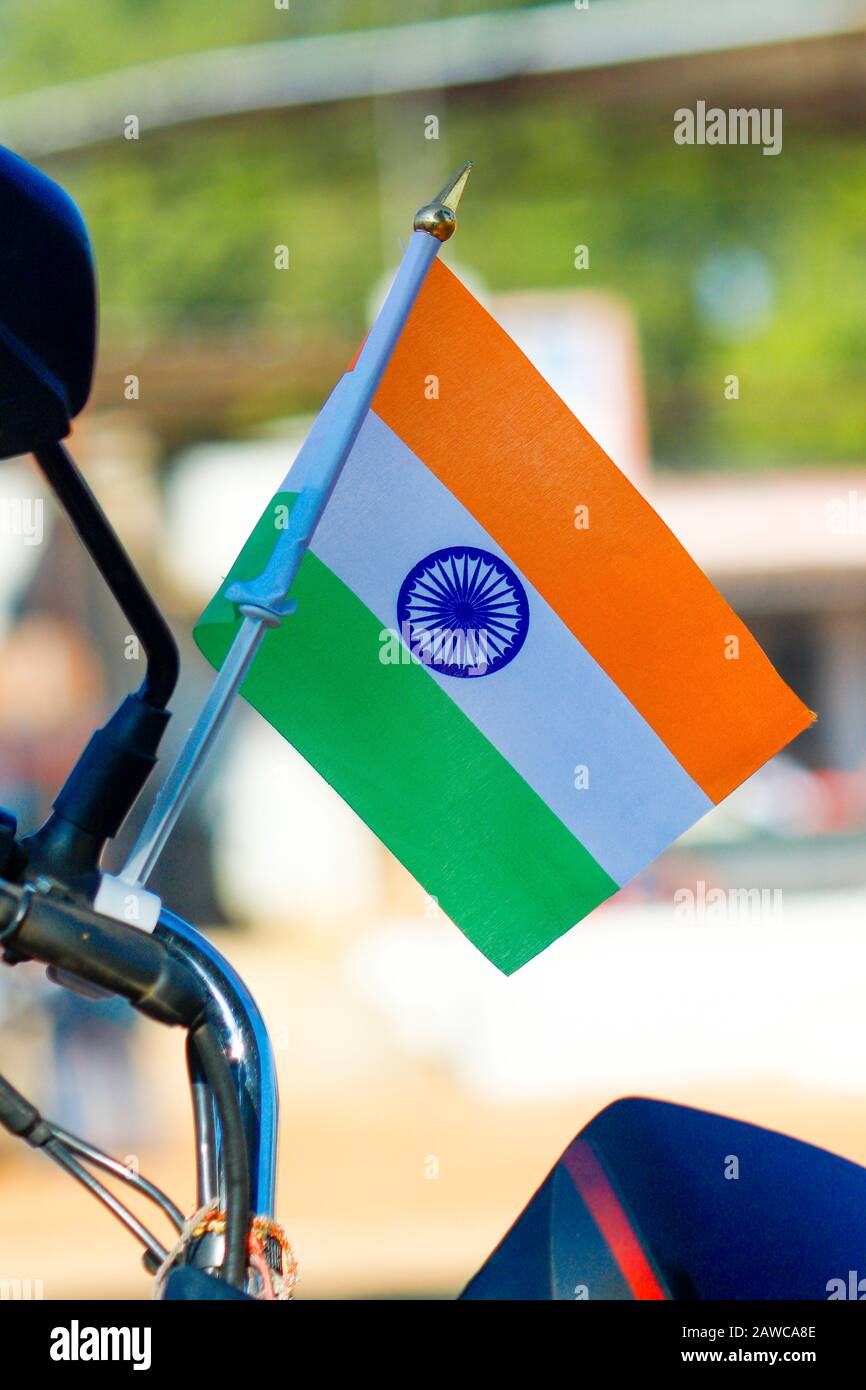 Image Of A Man Riding A Bike With Indian Flag On The Bike Kg864524 Picxy