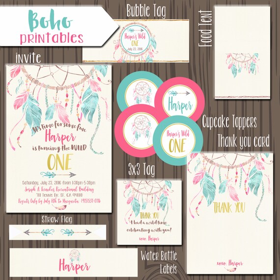 Boho Einladung Traumfanger Ladt Inderin Ausdrucke Tribal Etsy