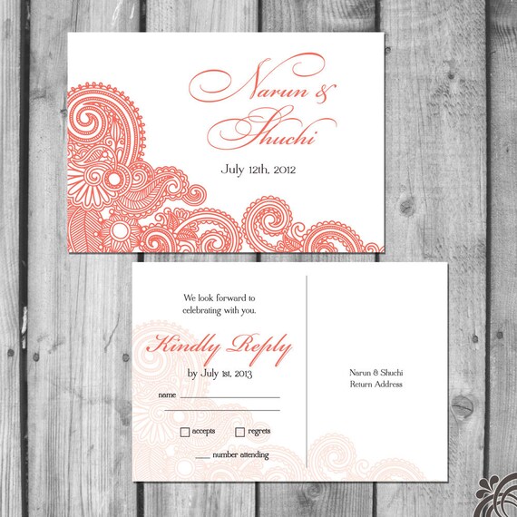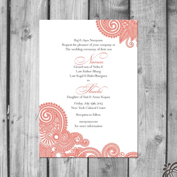 Indische Hochzeit Einladung Set Blumen Hochzeit Einladung Etsy