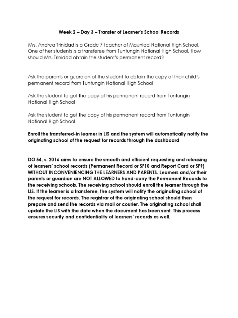 Guidelines On The Request And Transfer Of Learner S School Records Teacherph